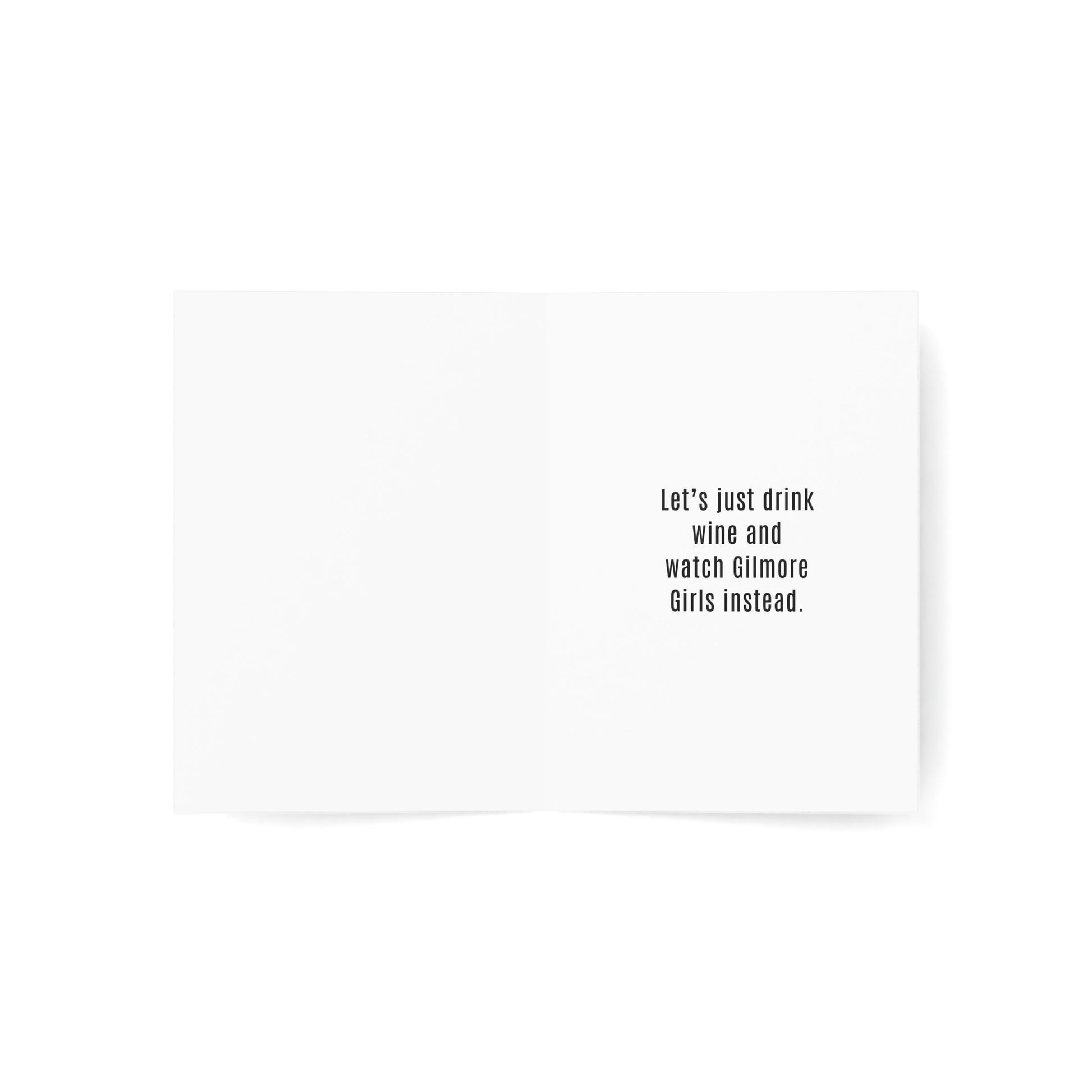 Because sometimes love is dead, dating apps are a dumpster fire, and all you really need is takeout, wine, and Stars Hollow. This card says what your group chat’s been screaming—loud, clear, and in all caps. A painfully relatable hug in card form, minus the emotional labor.