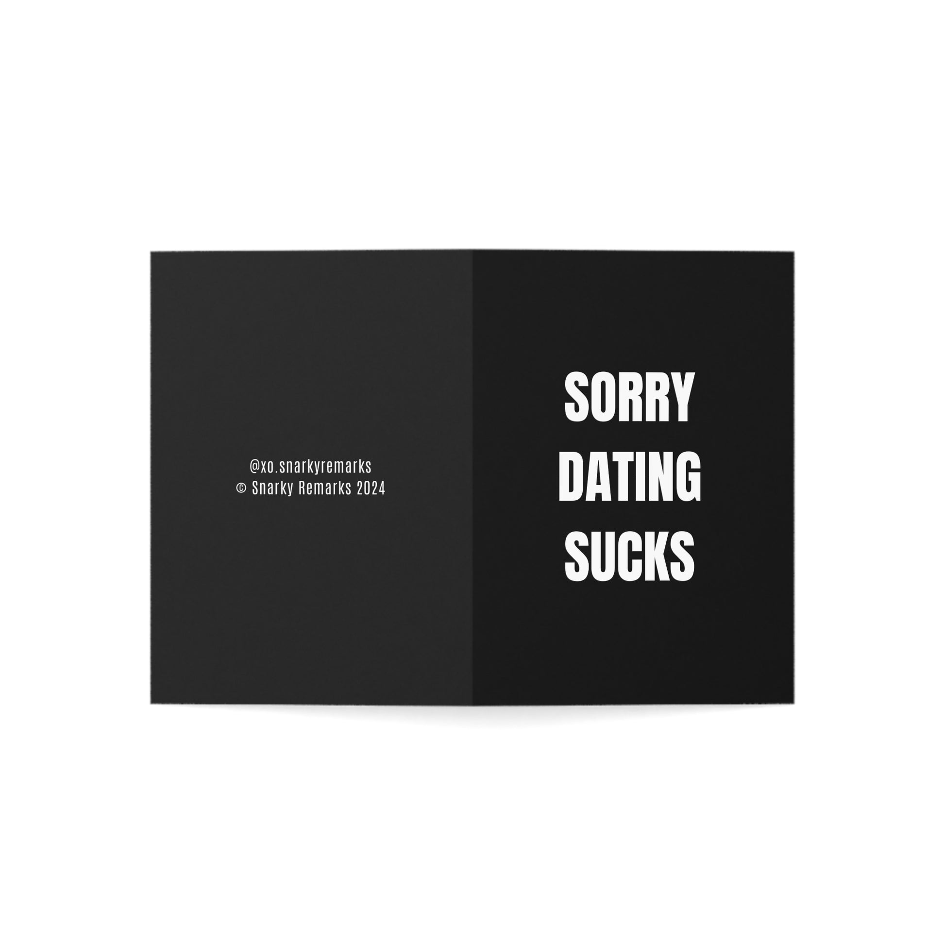 Dating in the 2020s? A literal hellscape. This brutally honest, funny greeting card is the perfect pick-me-up for your best friend who's been ghosted, matched with another walking red flag, or just done with modern romance.