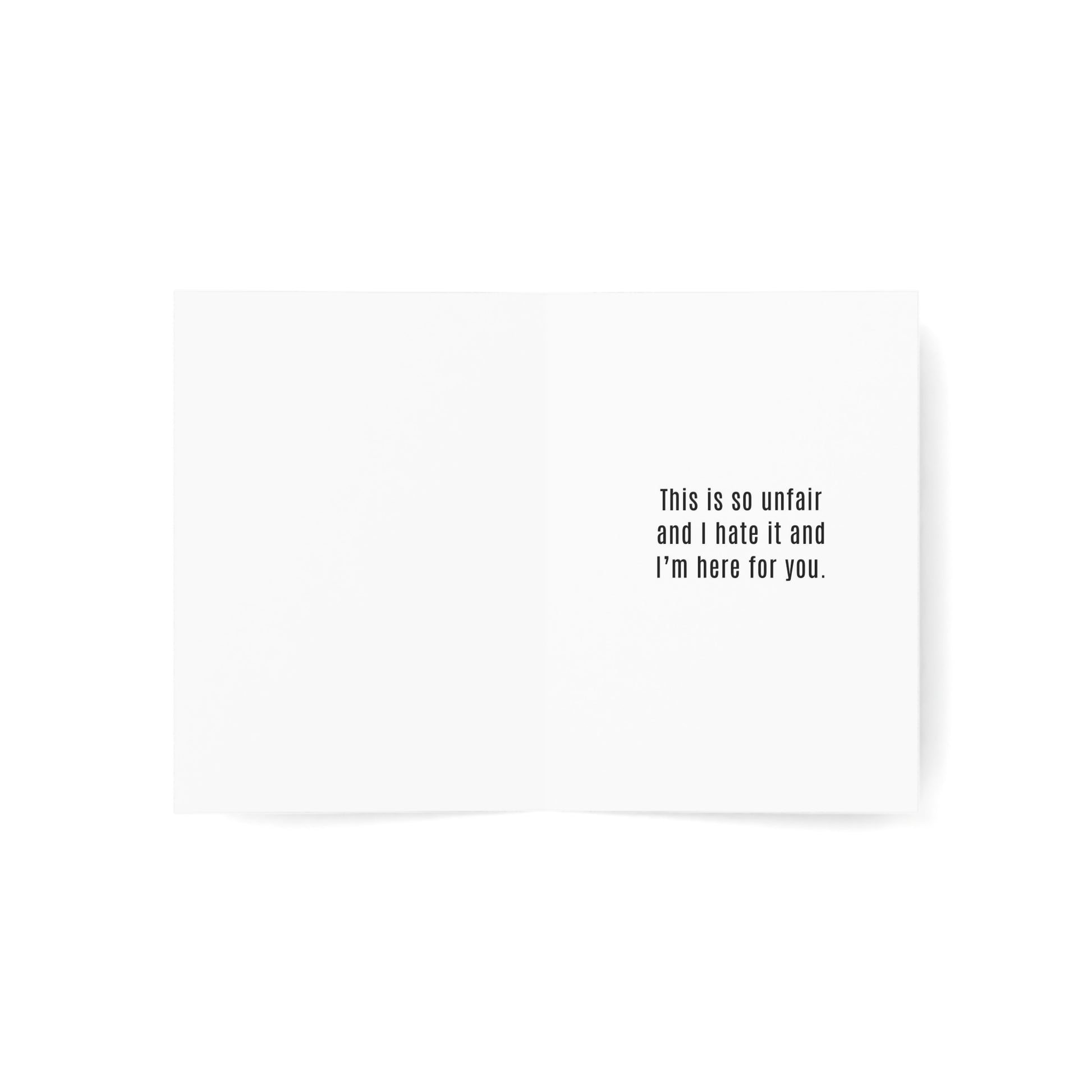 It’s the kind of card you send when there’s nothing to fix, but you want them to know they’re not alone.