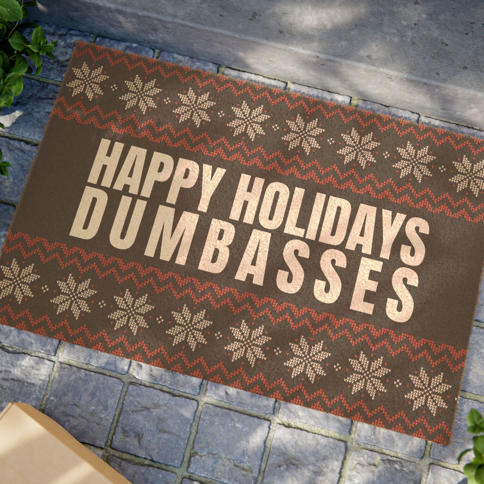 Welcome guests your way with our Happy Holidays Dumbasses Doormat — the perfect blend of sarcasm, honesty, and holiday spirit (emphasis on spirit).