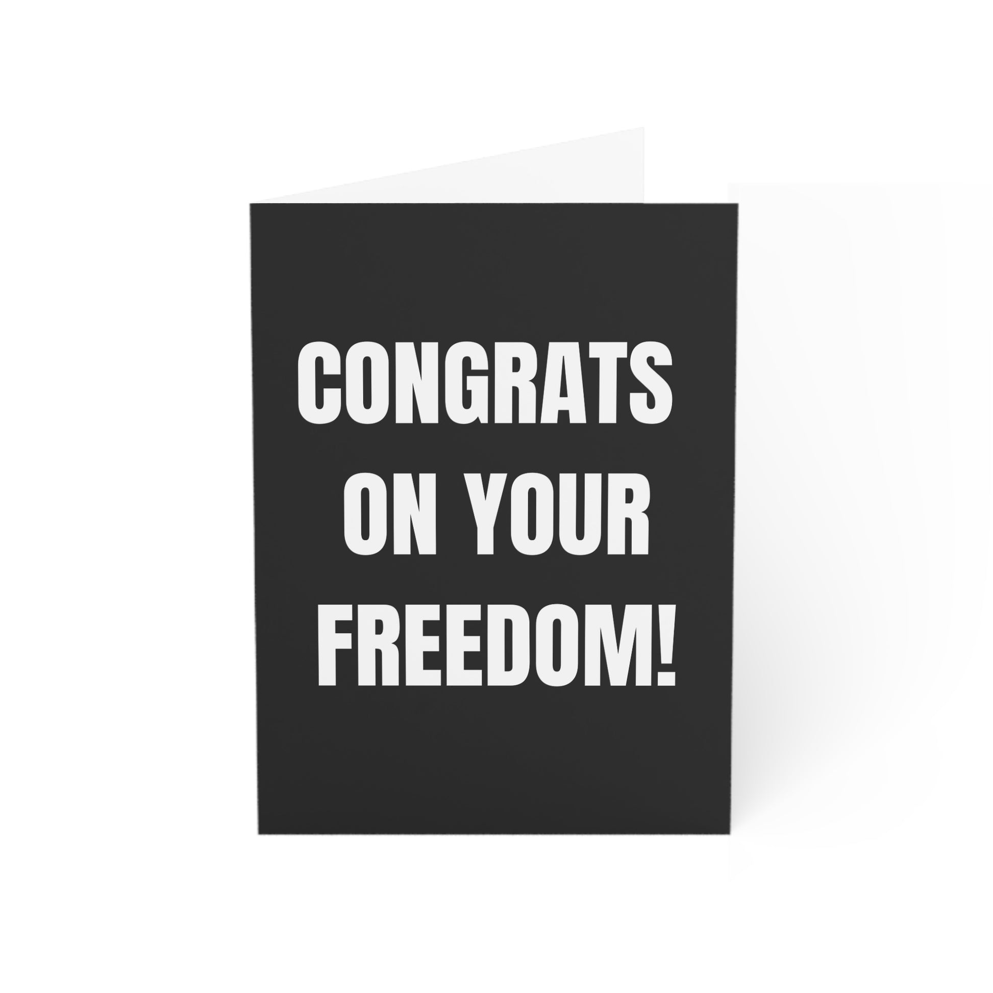 Celebrate newfound freedom with this hilariously cheeky divorce card. The front boldly states, "CONGRATS ON YOUR FREEDOM!" because every fresh start deserves a little celebration.