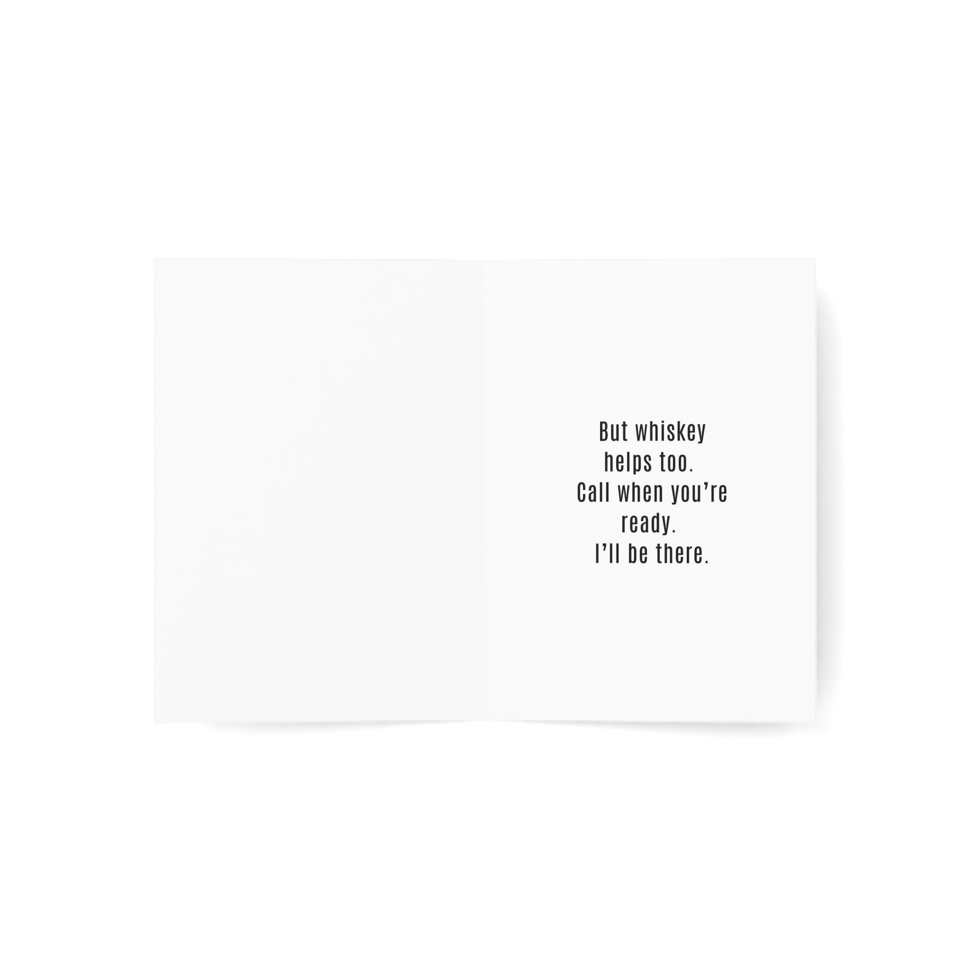 They say time heals all wounds… but let’s be honest, whiskey works faster. This card is for the friend who needs a reminder that they’re not alone—just one pour away from a good cry and a slightly better day. Perfect for breakups, breakdowns, or any moment life sucker-punches them in the feelings.